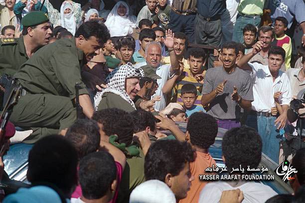 وفي اليوم التالي، عبر الرئيس الراحل "أبو عمار"، قطاع غزة بسيارته، متوقفاً من حين لآخر لـمصافحة الناس، الذين احتشدوا بالالاف لتحيته، وهم يهتفون "بالروح بالدم نفديك يا أبو عمار"، فرفع يده واسكتهم وقال: "اهتفوا فقط لفلسطين".