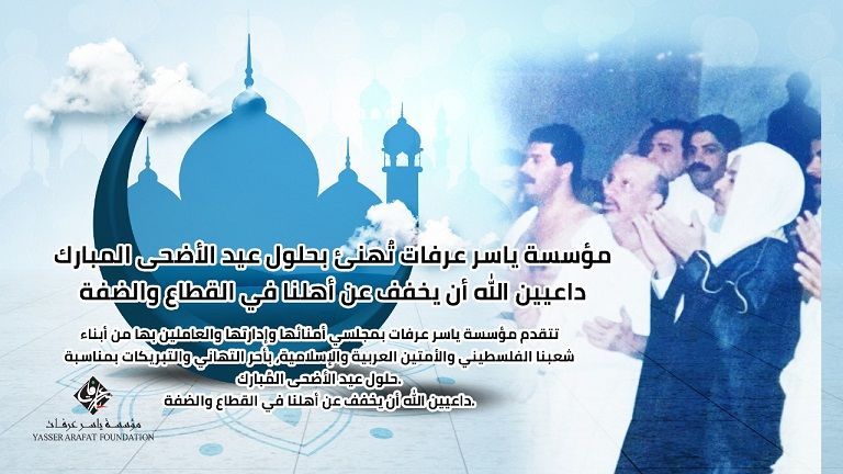 تتقدم مؤسسة ياسر عرفات ممثلة بمجلسي أمنائها وإدارتها، والعاملين بها، من أبناء شعبنا الفلسطيني والأمتين العربية والإسلامية، بأحر التهاني والتبريكات بمناسبة حلول عيد الأضحى المُبارك.