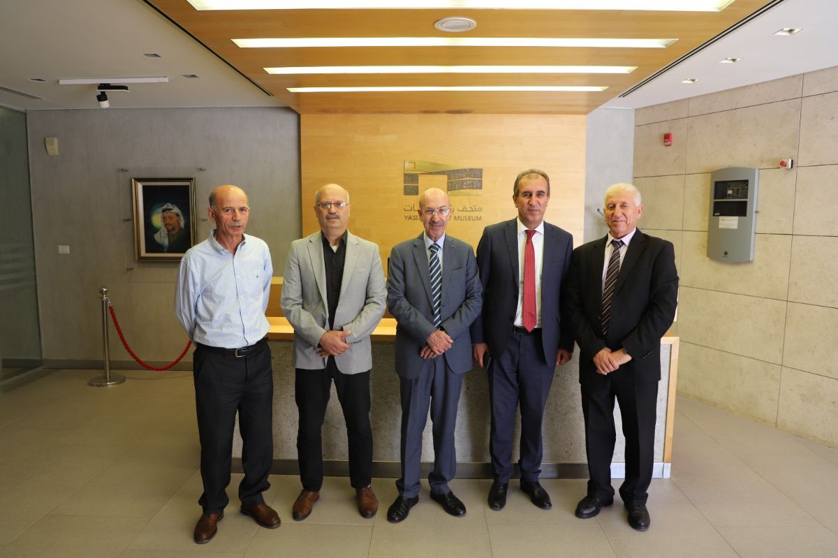 On Wednesday, August 27, 2025, Dr. Ahmad Soboh, Chairman of the Board of the Yasser Arafat Foundation, welcomed Prof. Dr. Hussein Shanak, President of Palestine Technical University – Kadoorie, along with Dr. Mahmoud Kmail, at the Yasser Arafat Museum in Ramallah. The meeting was also attended by Dr. Owda Masharqa, the Foundation’s Director General; Mohammad Halayqa, Director of the Museum; Fares Saqr, Director of Media and Public Relations; and Mahar Abu ein, Director of Activities.