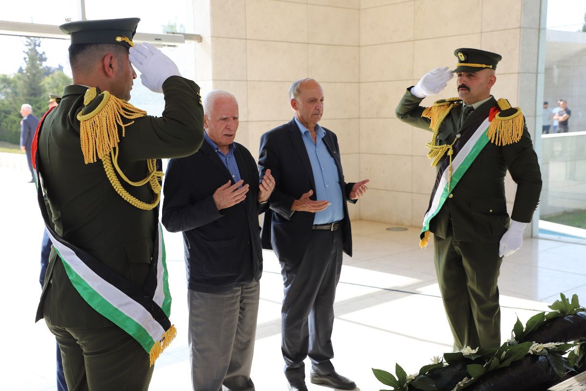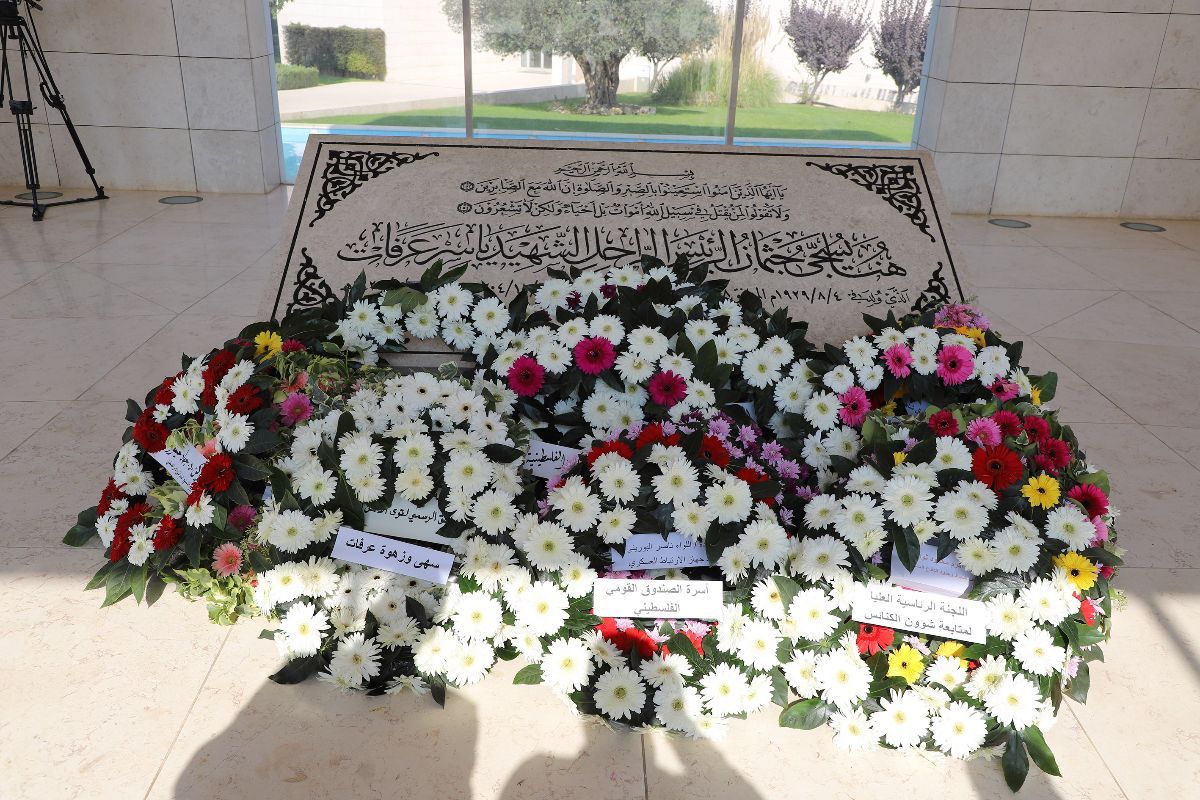 كما قام مجلس إدارة مؤسسة ياسر عرفات وإدارة وموظفو المؤسسة بوضع إكليل من الزهور على ضريحه.