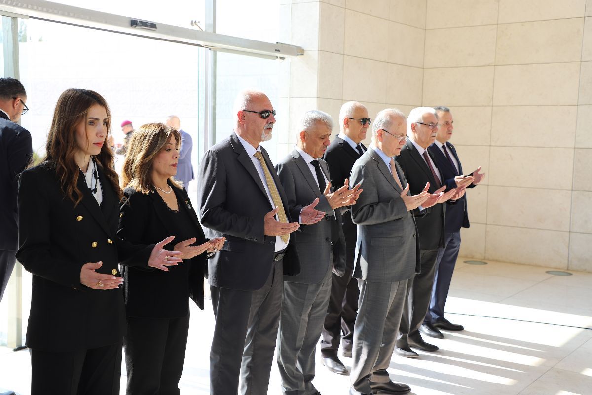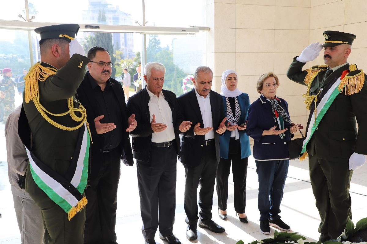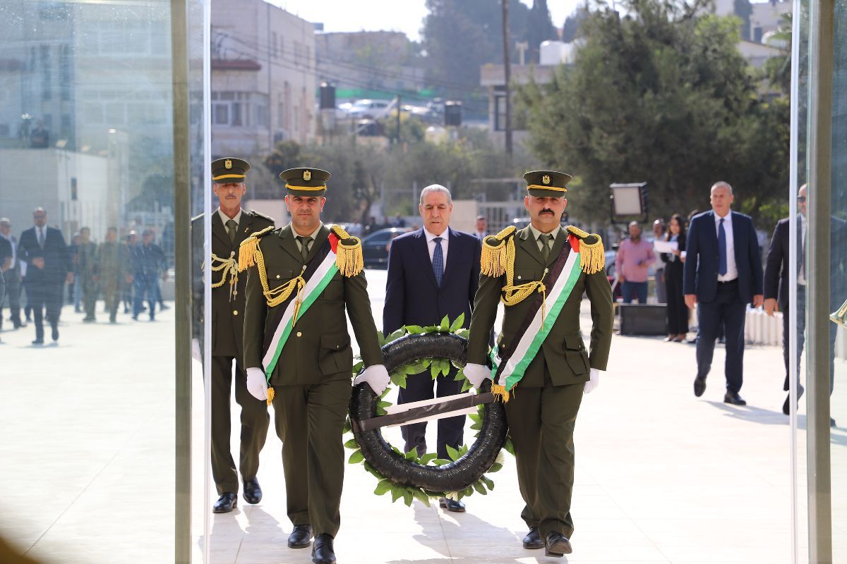 وتلا ذلك وضع أكاليل باسم فصائل منظمة التحرير، وقادة الأجهزة الأمنية، والمحافظـ والسفارات والممثليات الأجنبية، والاتحادات واللجان الشعبية، وقيادات من الحركة النسوية.