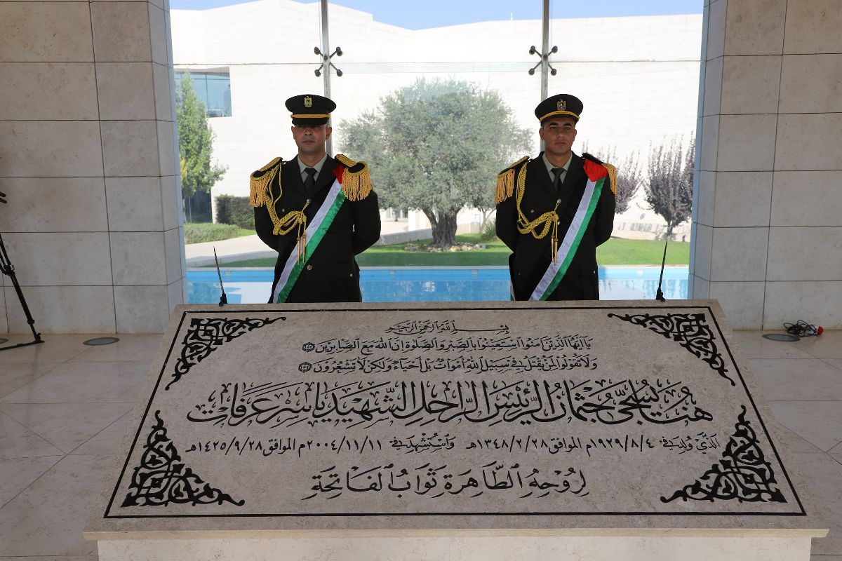 وتم وضع أكاليل الزهور على ضريح الرئيس المؤسس، حيث وضع الأخ حسين الشيخ نائب الرئيس إكليل السيد الرئيس، وتلاه نائب رئيس المجلس الوطني م. موسى حديد، ثم تلاهم أعضاء اللجنة التنفيذية لمنظمة التحرير الفلسطينية، ورئيس وأعضاء الحكومة كذلك الأمر وضع أعضاء اللجنة المركزية لحركة فتح إكليلهم.