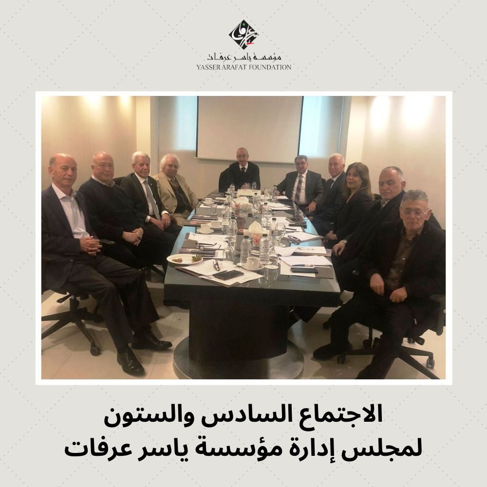 عقد مجلس إدارة مؤسسة ياسر عرفات اجتماعه السادس والستون اليوم الأربعاء 2026/01/14 في العاصمة الأردنية عمان، برئاسة د. أحمد صبح رئيس مجلس الإدارة، ومشاركة د. ممدوح العبادي رئيس مجلس الأمناء، وحضور كافة أعضاء المجلس، بالإضافة إلى مدير عام المؤسسة ومدير المتحف.